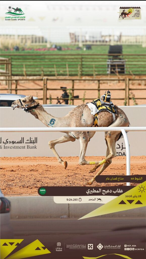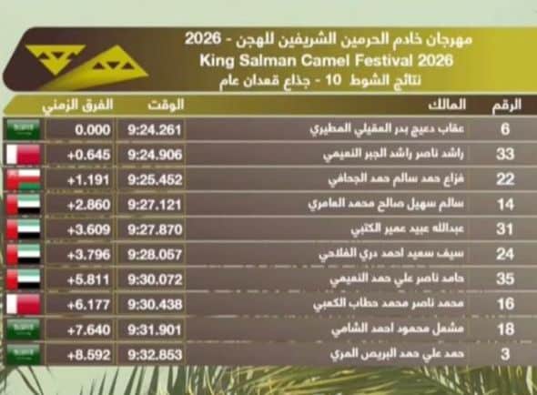 عقاب المطيري يحقق المركز الأول في مهرجان خادم الحرمين الشريفين للهجن 2026