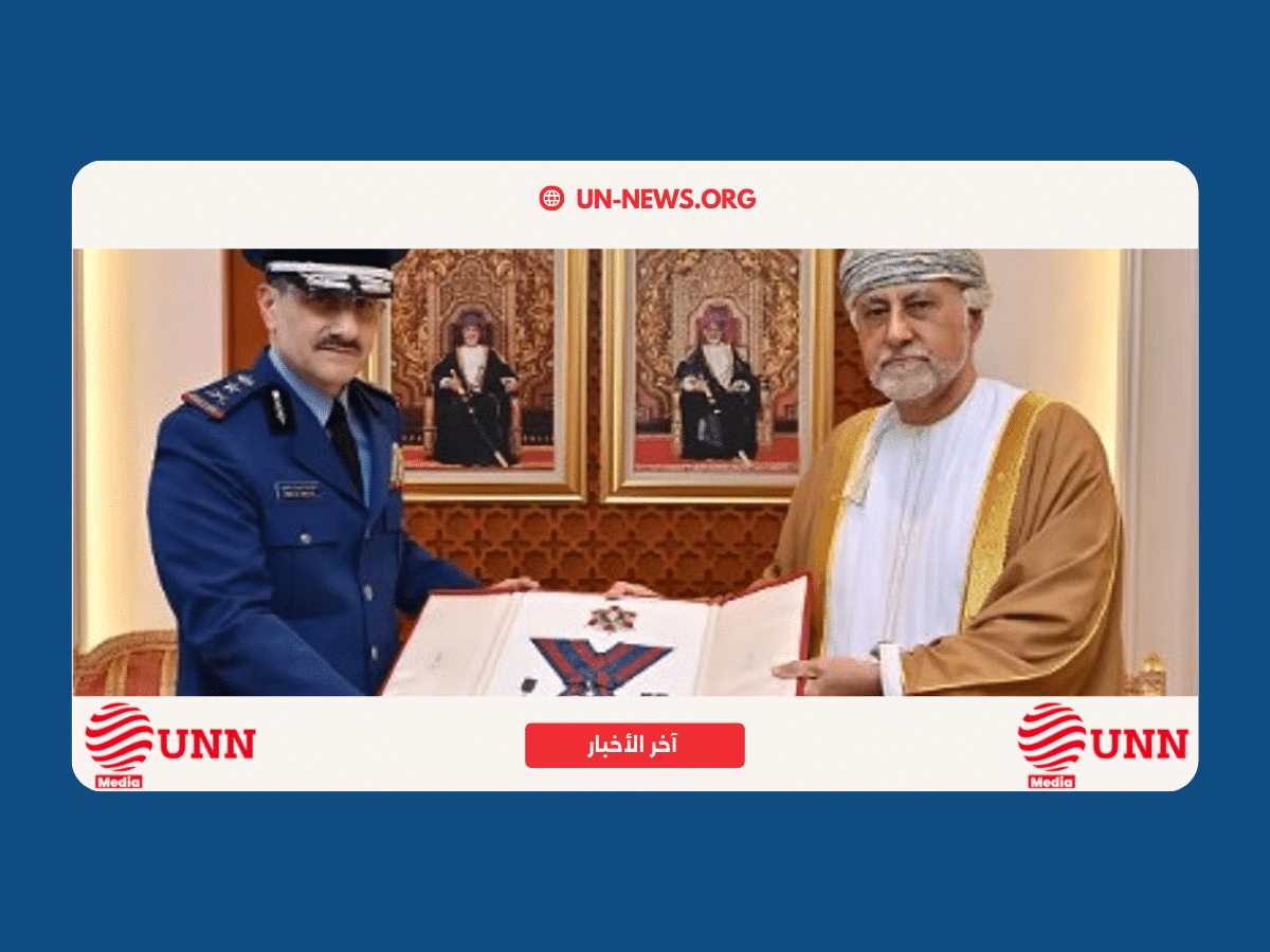 The Sultan of Oman confers a high-ranking military medal upon the Commander of the Saudi Forces.